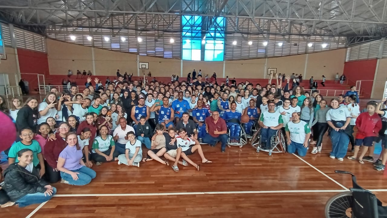 Uma outra atividade desta semana foi a participação do time de Basquete do Instituto Paradesporto de Ribeirão Preto, na sexta-feira (26/9), que fez um apresentação na quadra da EMEB. “João Nogueira”, e possibilitou que crianças e adolescentes pudessem conhecer o basquete em cadeira de rodas e até mesmo participar efetivamente.